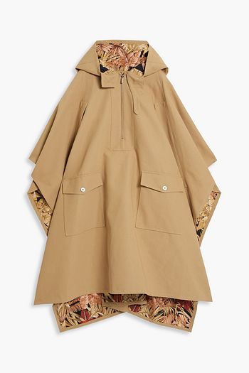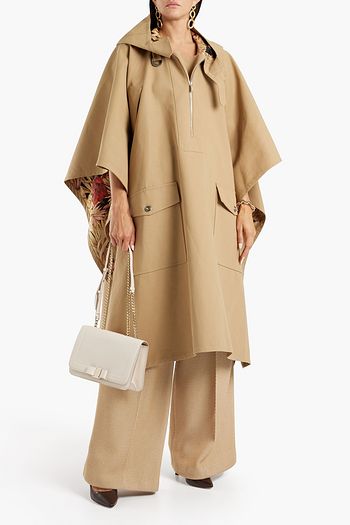 Cotton and linen-blend gabardine hooded poncho