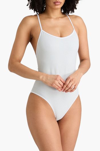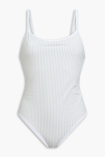 Striped stretch-seersucker swimsuit