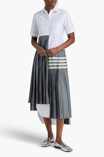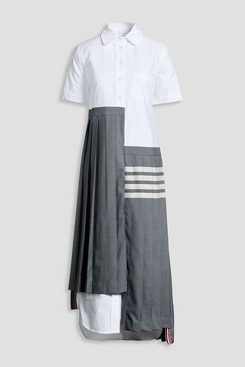 Asymmetric striped poplin-paneled wool midi shirt dress