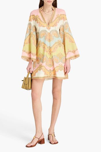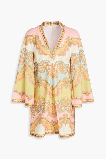 Embellished cutout paisley-print linen mini dress