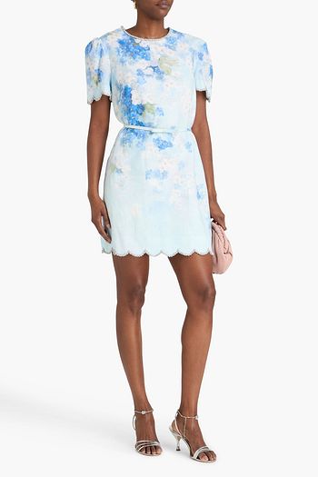 Ruffled floral-print crepe midi dress