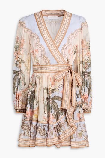 Floral-print cotton mini wrap dress