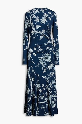 Off-the-shoulder floral-print silk-crepe maxi dress
