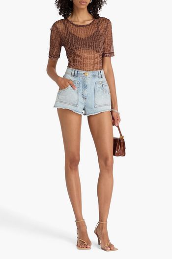 Printed denim shorts