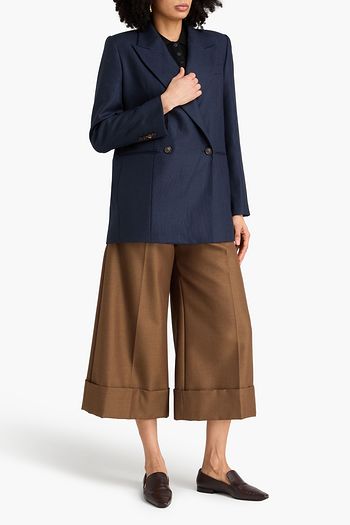 Printed wool-blend twill wide-leg pants