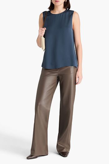 Draped satin and stretch-crepe top