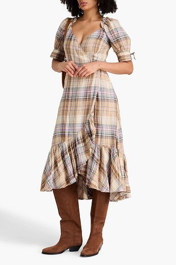 Paula two-tone printed TENCEL™ and linen-blend midi wrap dress