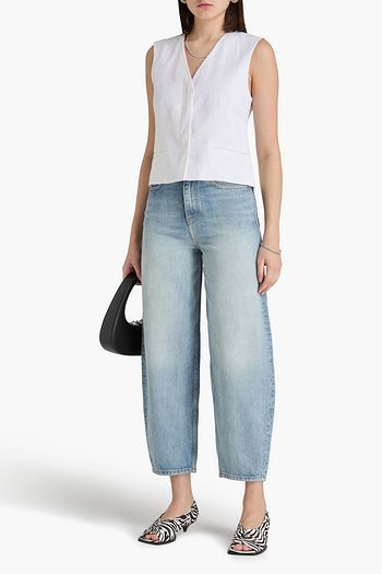 Cropped linen-blend vest