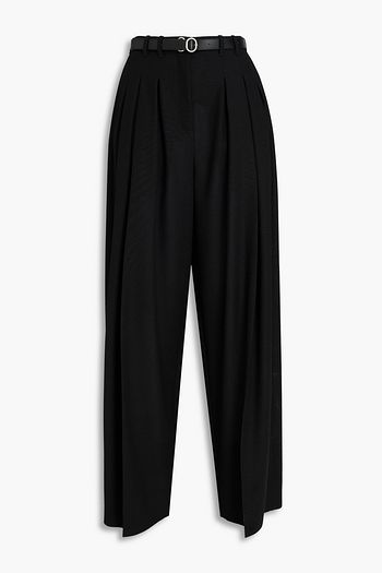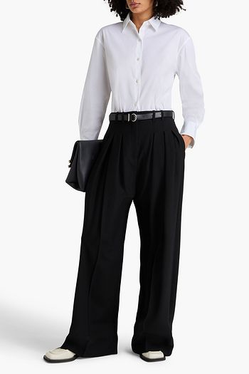 Jacquard-trimmed cotton and linen-blend wide-leg pants