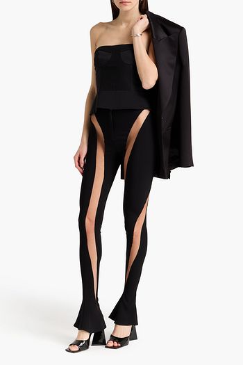 Paneled silk tulle-trimmed twill straight-leg pants