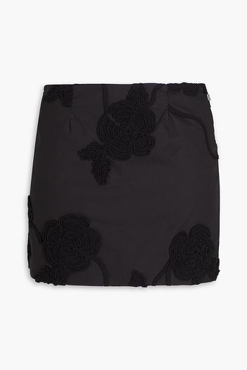 Floral-appliquéd satin mini skirt