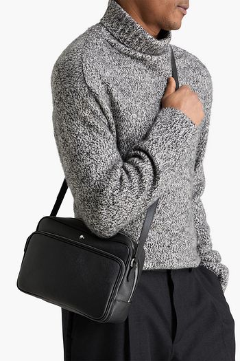 Two-tone leather-trimmed textured pouch
