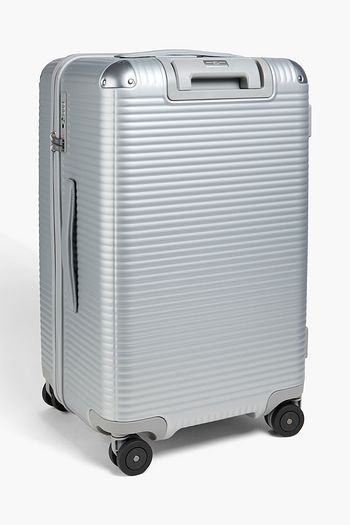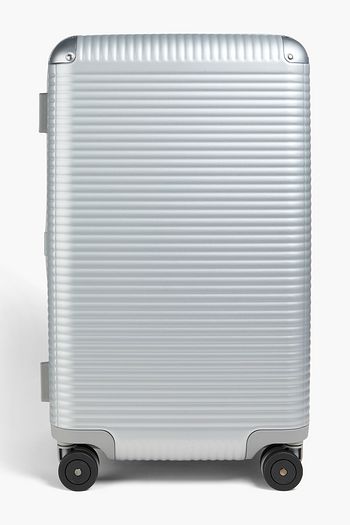 Spinner 55cm leather-trimmed metallic polycarbonate suitcase