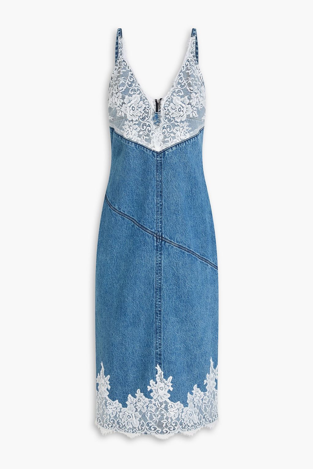 3.1 PHILLIP LIM Lace-paneled denim midi slip dress