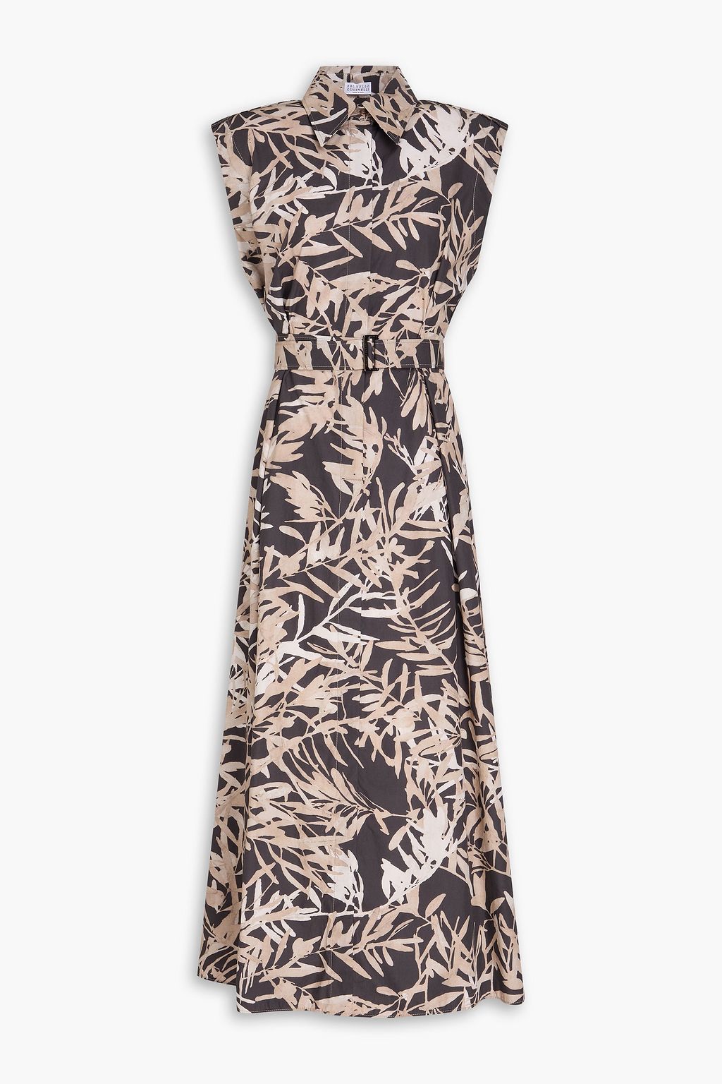BRUNELLO CUCINELLI Belted printed cotton-poplin midi shirt dress