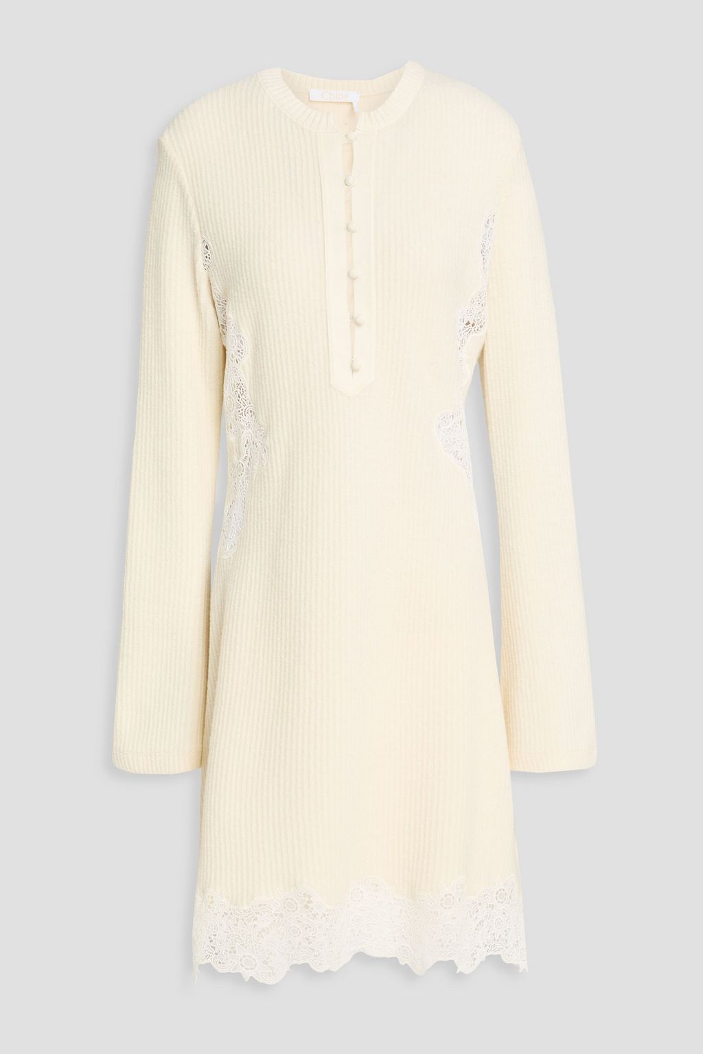 CHLOÉ Lace-trimmed ribbed wool mini dress