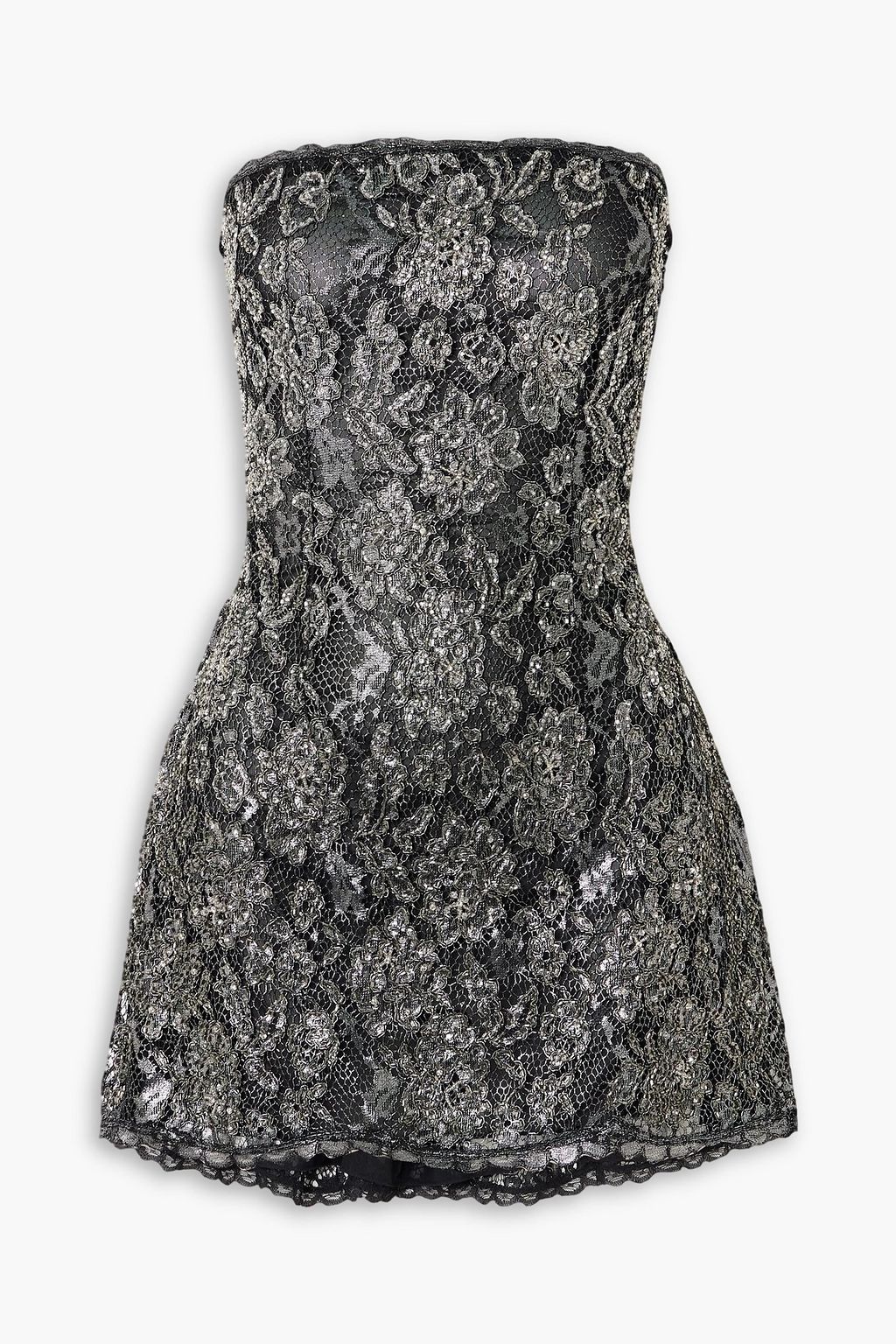 CLIO PEPPIATT Isla strapless embellished metallic guipure lace mini dress