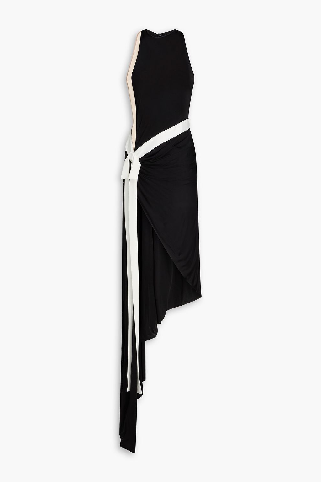 DAVID KOMA Asymmetric tulle-paneled jersey gown