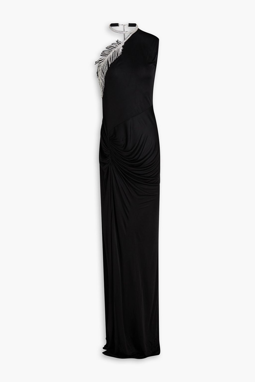 DAVID KOMA One-shoulder crystal-embellished jersey gown