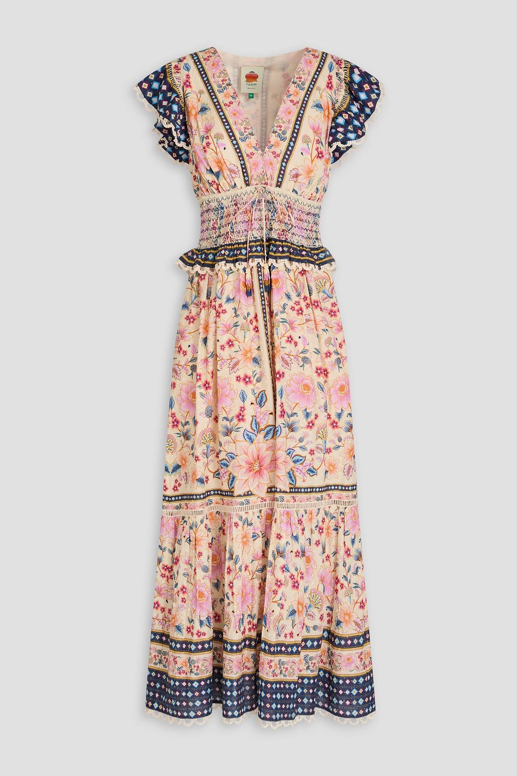 FARM RIO Crochet-trimmed floral-print Swiss-dot cotton maxi dress