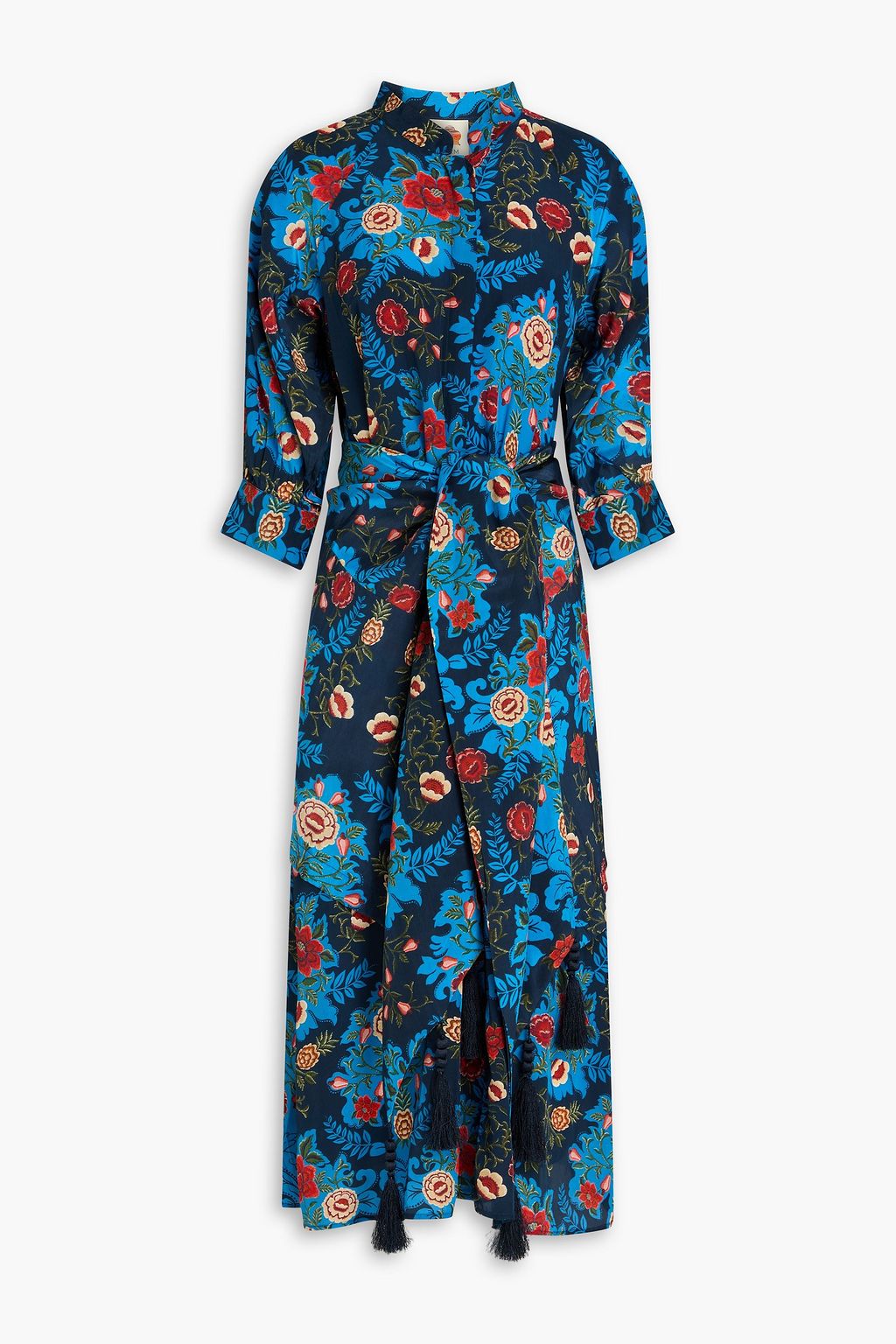 FARM RIO Tasseled floral-print crepe de chine midi dress