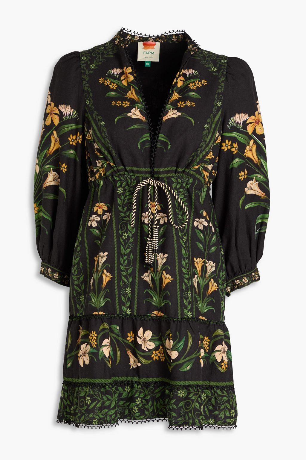 FARM RIO Floral-print linen-blend mini dress