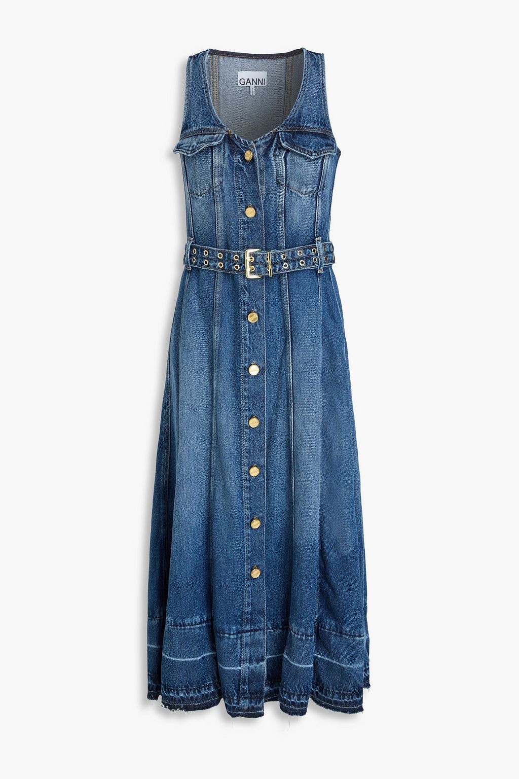 GANNI Belted denim midi dress
