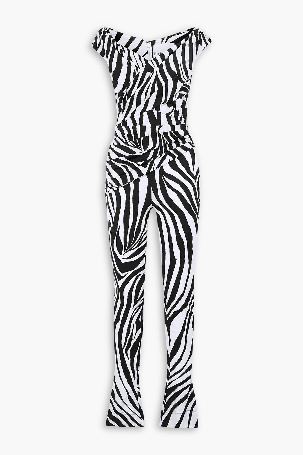 HALPERN Off-the-shoulder zebra-print satin jumpsuit