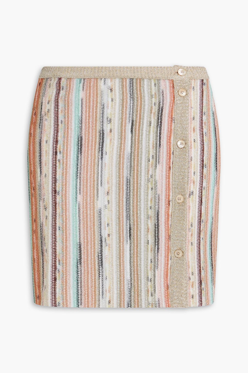 Metallic crochet-knit mini skirt