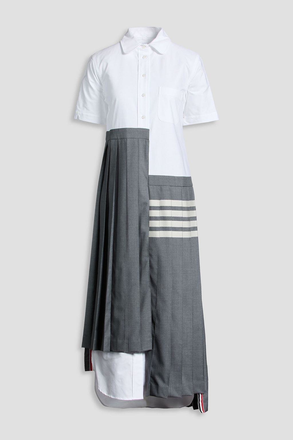 THOM BROWNE Asymmetric striped poplin-paneled wool midi shirt dress