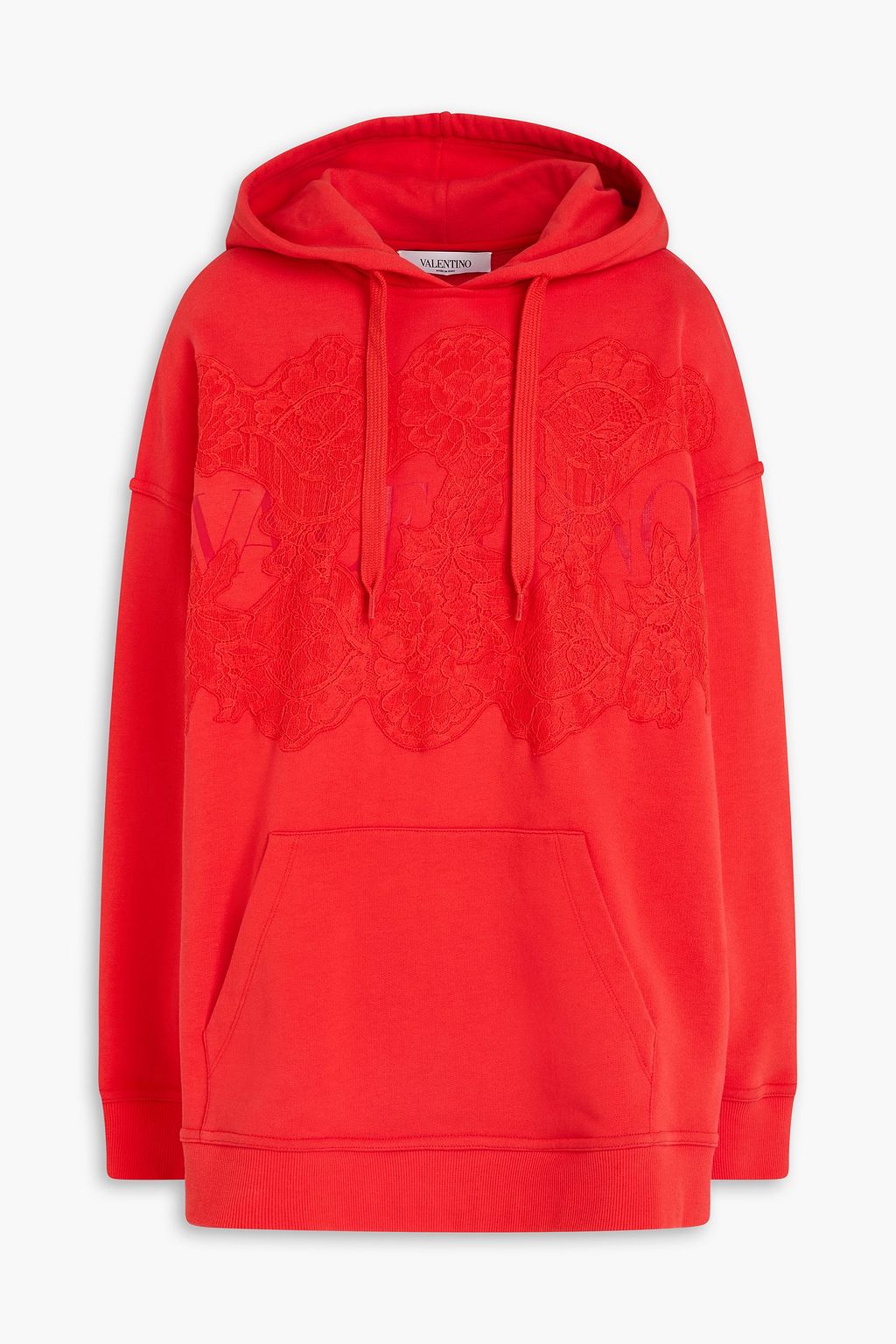 VALENTINO GARAVANI Lace-paneled French cotton-terry hoodie
