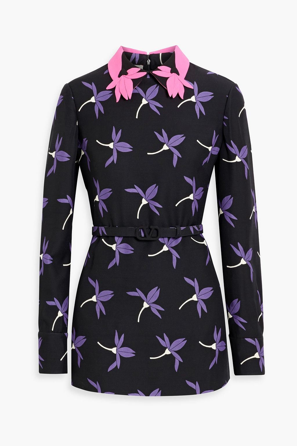 VALENTINO GARAVANI Appliquéd floral-print wool-blend crepe top