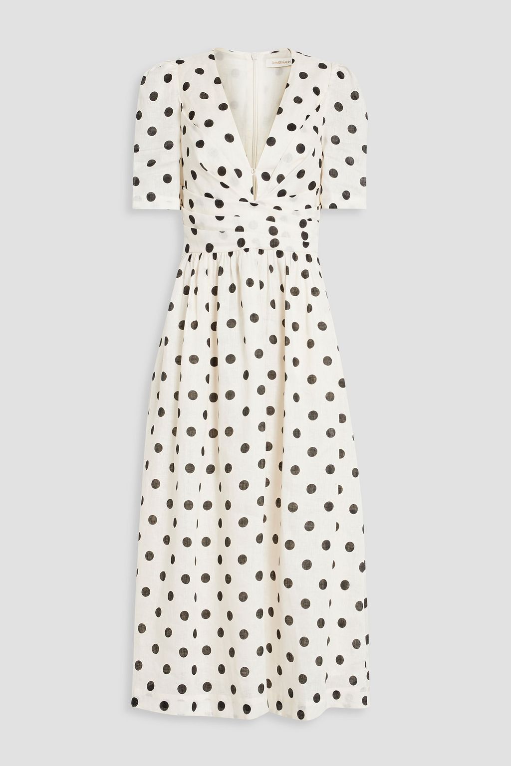 ZIMMERMANN Pleated polka-dot linen midi dress