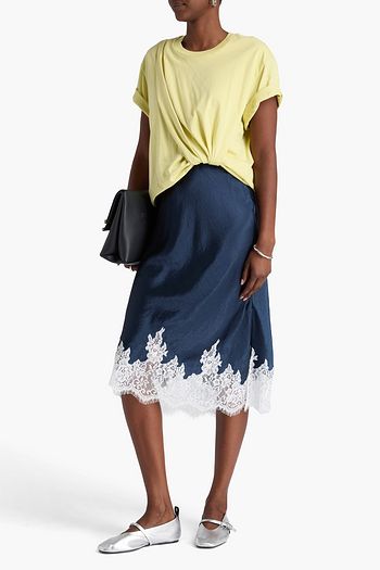 Lace-trimmed ribbed jersey and satin top