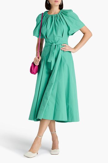 Belted cotton-blend poplin mini dress