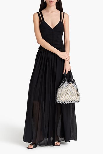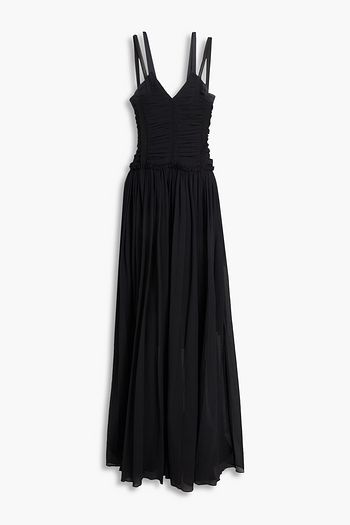 Ruffled chiffon-trimmed satin midi dress