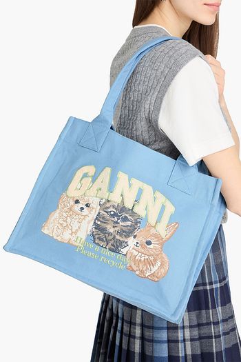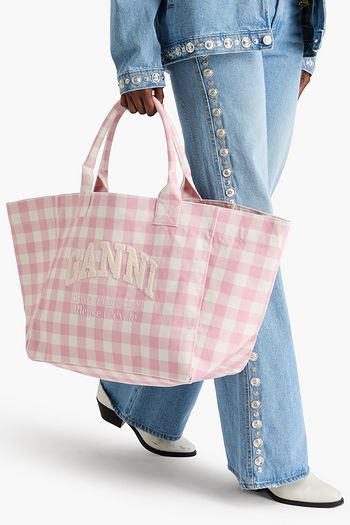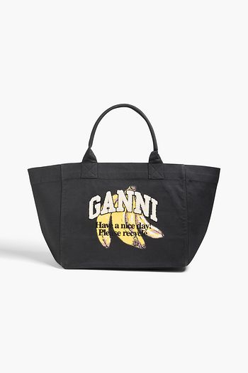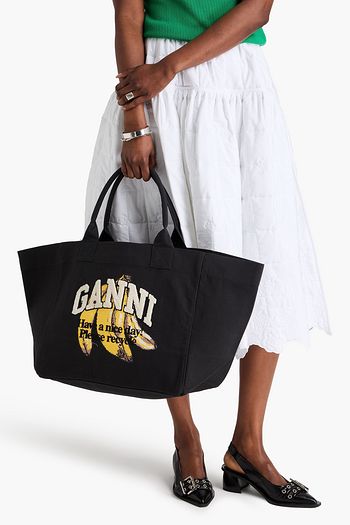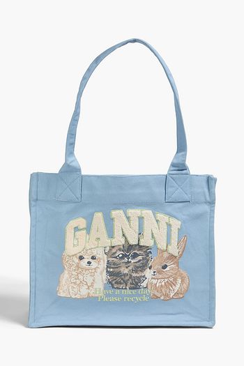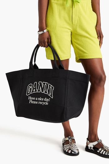 Embroidered printed cotton-canvas tote