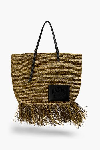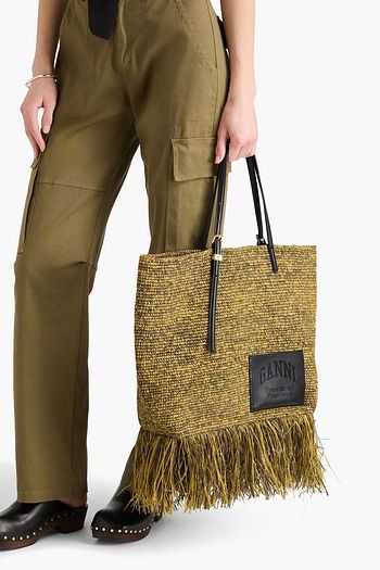 Fringed raffia tote