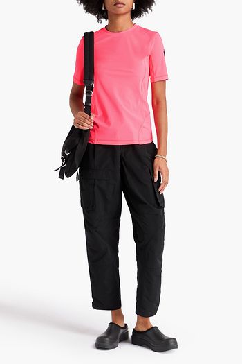 Cropped cutout printed stretch-jersey top