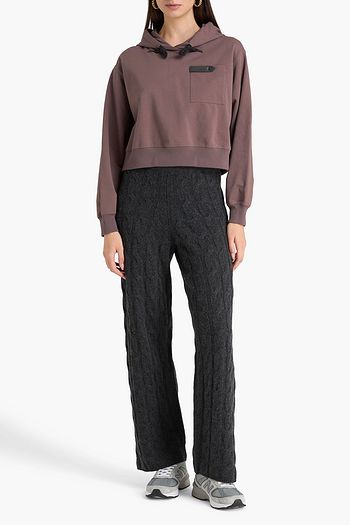 Shell-paneled bead-embellished French cotton-blend terry zip-up hoodie