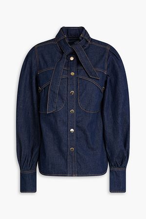 The brushstrokes might be yours: some chandelier earrings, a hot hue of lipstick or perhaps a brooch. (The latter approach was chosen by one of the earliest female white-shirt adopters, Katharine Hepburn in the 1938 film Holiday. Prior to that, no nice girls wore white blouses. Shirts were strictly for the boys.) Then again, the flourishes might be the shirt’s own: a ruffle, a flounce, a bow, embroidery, a bouffant shoulder or cuff; all of the above.