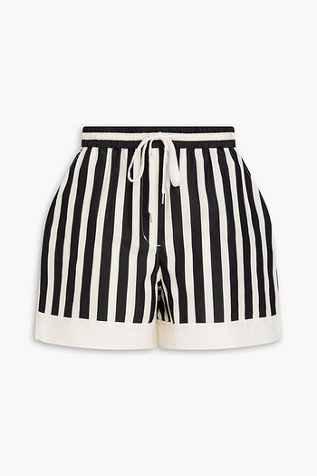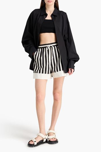 Striped embellished cotton-blend poplin shorts