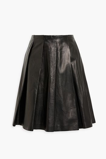 Belted scalloped leather midi skirt