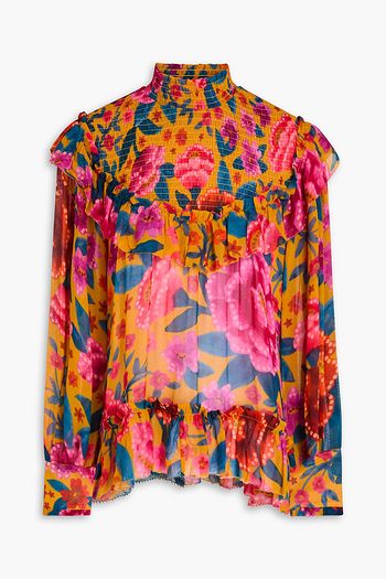Ruffled floral-print silk-crepon top