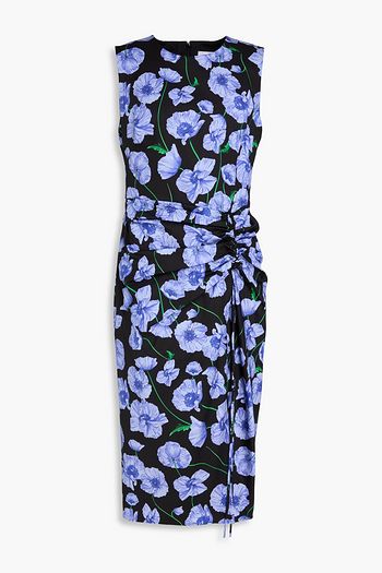 One-shoulder gathered floral-print silk-chiffon midi dress
