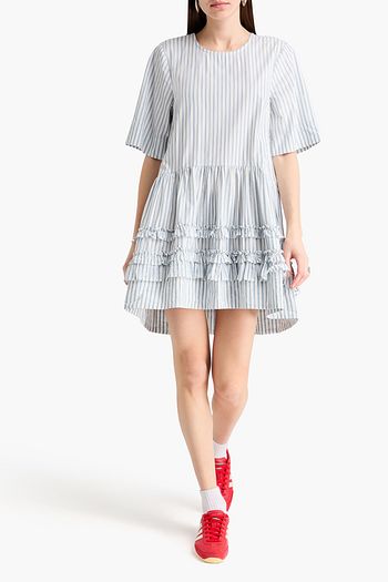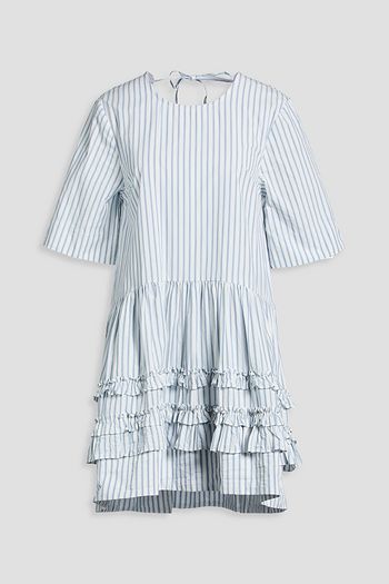 Ruffle-trimmed tie-dyed stretch-satin mini dress