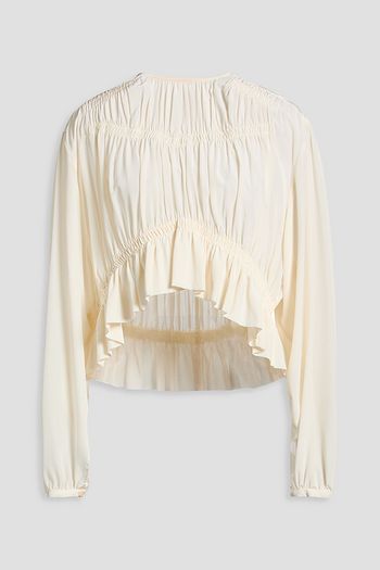 Cropped shirred silk-crepon blouse