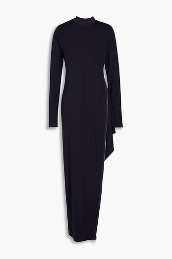 Asymmetric zip-detailed jersey maxi dress