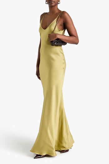 Open-back tie-detailed gathered floral-print crepe maxi dress