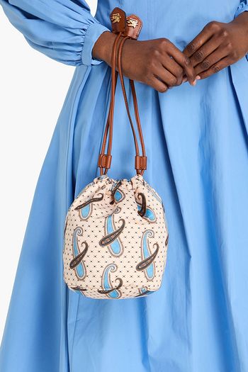 Leather-trimmed paisley-print satin pouch